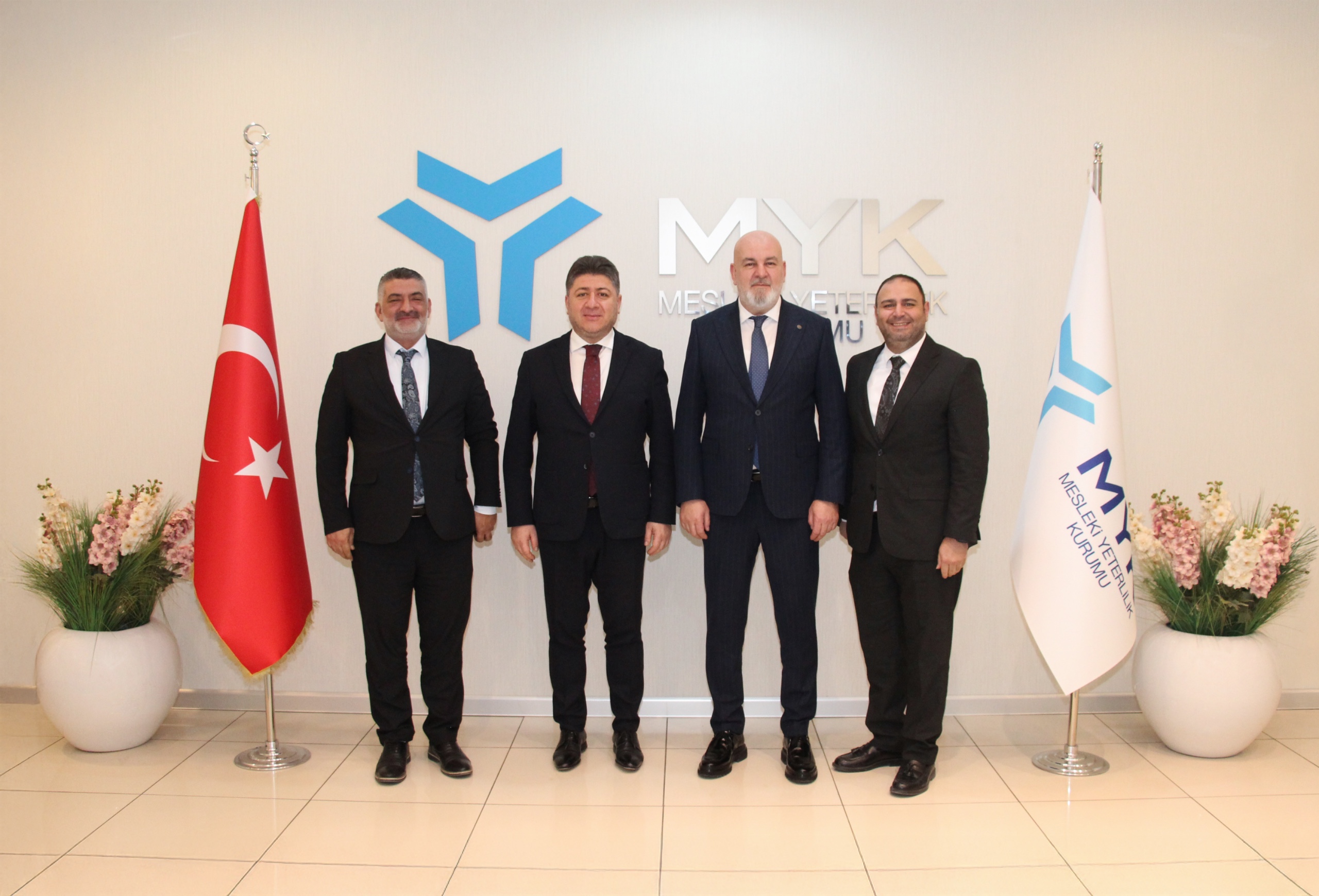 Türkiye Damızlık Sığır Yetiştiricileri Merkez Birliği Genel Başkanı İlhan Köten, Genel Sekreter İbrahim Karakoyunlu ve Teknik İşler Şube Müdürü Onur Yiğit, Mesleki Yeterlilik Kurumu (MYK) Başkanı Aşkın Tören beyi makamında ziyaret etti.